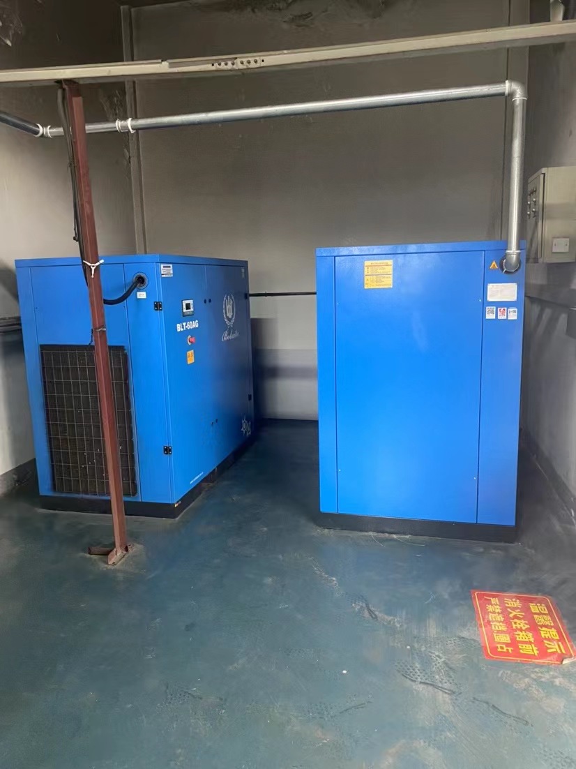 博萊特空壓機和一臺22kw紅五環(huán)空壓機已經(jīng)滿足不了正常生產(chǎn)和實驗測試,根據(jù)客戶的要求我們給客戶提供一臺博萊特空壓機55kw的螺桿空壓機,加一臺3.5Nm³/Min的變壓吸附式干燥機并以鍍鋅管的方式安裝。滿足客戶需求,客戶對這樣的空壓機配套表示非常滿意。
