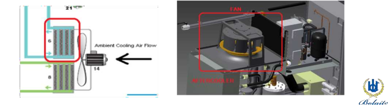 一體式設(shè)計:水冷卻器和后冷卻器(風(fēng)冷)都在一起(環(huán)境溫度:0-40℃)